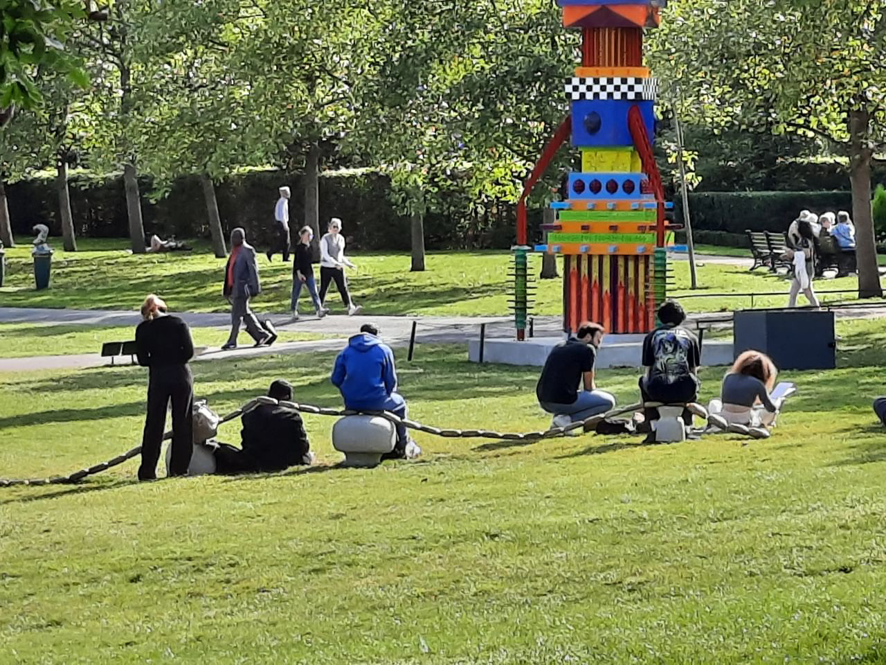 You will make wishes for your neighbor (54 Days), 2024. Copper alloy, laterite and concrete. Dimensions variable. Commissioned by the Middelheim Museum, Antwerp, Belgium. Photography by Léonard Pongo. Â